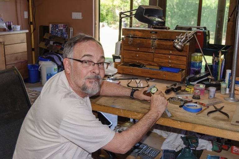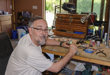 Mark McCloskey is a retired Electrical and Software Engineer. He has been creating and fabricating designs in metal for over 20 years. With a strong technical background and appreciation of science and physics, many of Mark's designs feature compositions of intricate parts skillfully and artfully combined to create a beautiful piece of jewelry or metal art piece. He continually experiments with innovative ways of using metal to create unique and interesting art.