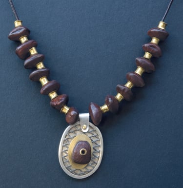 Sterling Silver with brass accents and Texas Ebony seeds used as beads.